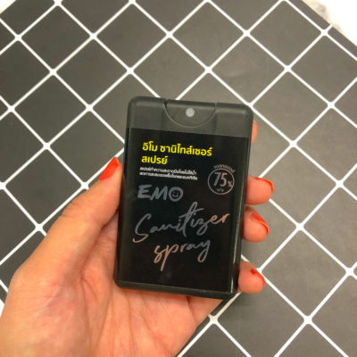 สำหรับตัวแรกของสเปรย์แอลกอฮอล์คือตัวนี้เลย “EMO ชานิไทล์เซอร์สเปรย์” ตัวนี้เห็นครั้งแรงคือกรี๊ดเลย ตอบโจทย์มากๆสำหรับเพื่อนๆคนไหนที่ชอบความสะดวกในการพกพามีขนาดเล็กพอดีมือฉีดง่ายจะบอกว่าเริศมาก ฉีดแล้วไม่เหนียวเหนอะหนะหมดกังวลว่าเวลาใช้จะลืมฝาไว้ที่ไหนรึเปล่า แถมเขาบอกว่าฉีดได้ถึง 300 ครั้งเลยนะ มีให้เลือกสองสี สีขาว,สีดำ ชอบสีไหนก็ไปตำกันได้เลยจร้า