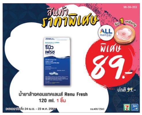 สามารถเลือกซื้อน้ำยาล้างคอนแทคเลนส์ Renu Fresh น้ำยาล้างคอนแทคเลนส์ได้มาตรฐาน มีคุณภาพสามารถซื้อได้ที่ร้านยา เอ็กซ์ต้า พลัส ทุกสาขา ค้นหาสาขาที่ได้ที่นี่ exta.co.th/store หรือสามารถสั่งซื้อผ่านช่องทางออนไลน์ได้ที่ ALL Online By 7-Eleven และ ShopAt24 มีบริการส่งฟรีที่เซเว่นอีเลฟเว่นสาขาใกล้บ้านด้วยนะคะ