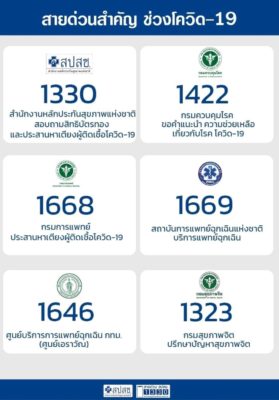 📌นอกจากเบอร์สายด่วนเหล่านี้แล้ว หากมีข้อสงสัยเพิ่มเติมเกี่ยวกับวิธีการป้องกันและการปฏิบัติตัวให้รอดพ้นจาก COVID-19