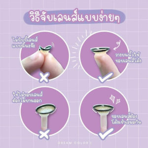 – ทำความสะอาดด้วยน้ำยาทำความสะอาดคอนแทคเลนส์ ก่อนใส่และหลังใส่ทุกครั้ง ควรศึกษาเพิ่มเติมในเอกสารกำกับเครื่องมือแพทย์