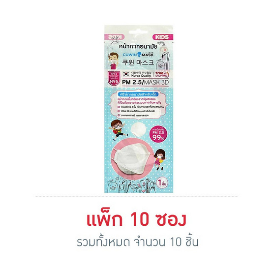 หน้ากากอนามัยสำหรับเด็กคูวินมาส์ก รุ่น KF94 ซอง 1 ชิ้น (แพ็ก 10 ซอง)
