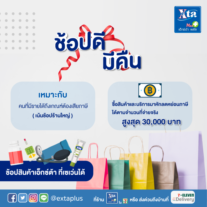 🛍 ใช้สำหรับ : ซื้อสินค้าบริการในระบบภาษีมูลค่าเพิ่ม รวมถึงสินค้าเพื่อสุขภาพจากเอ็กซ์ต้า พลัส