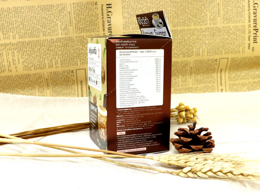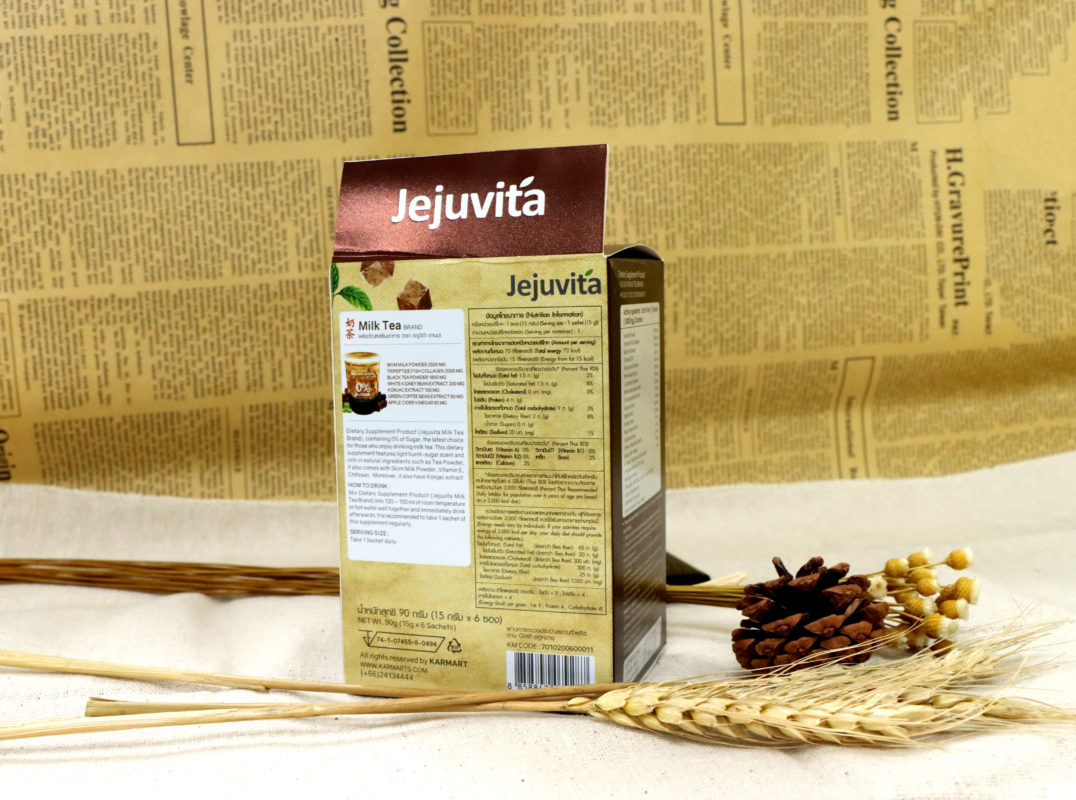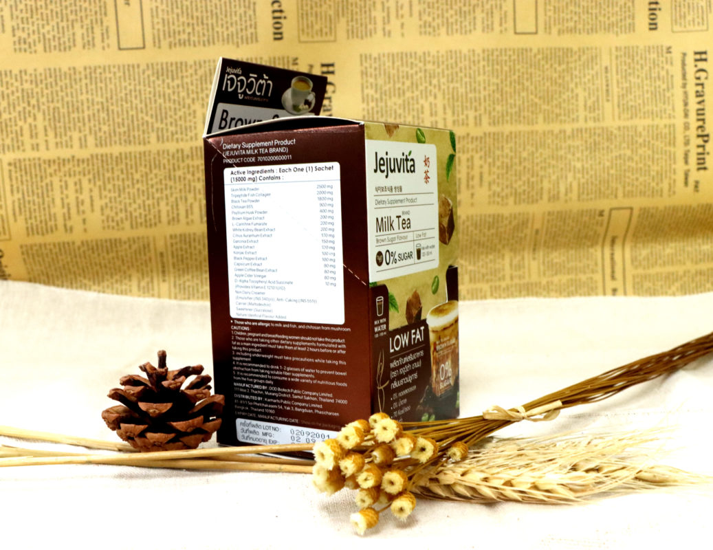 สำหรับ เจจูวิต้า ชานมตัวนี้เป็นผลิตภัณฑ์ตัวใหม่ล่าสุด ที่ทาง เจจูวิต้า ทำขึ้นมา เพื่อเอาใจสาวกชานม และต้องการในเรื่องของการควบคุมน้ำหนัก ซึ่งตัวนี้เป็น ชานม ในรูปแบบผง พร้อมชง กลิ่นบราวน์ชูก้า เป็นผลิตภัณฑ์อาหารเสริม 0% ทั้งคอเลสเตอรอล และน้ำตาล อีกทั้ง ยังมีปริมาณ ไขมันต่ำ และ ให้พลังงานน้อย เพียงแค่ 70 กิโลแคลอรี่ต่อซอง เท่านั้น จริงๆ แค่เราเห็น คำว่า “LOW FAT” หน้าซองก็อดใจ ที่จะหยิบขึ้นมาลองไม่ไหวแล้ว แถมยังเป็นราคา ที่ทุกคนสามารถเอื้อมถึงได้ด้วย เพียงแค่ ซองละ 39 บาท อีกทั้ง ยังมีคุณประโยชน์ จากส่วนผสม คอลลาเจนไตรเปปไทด์ จากปลา และ ใยอาหาร เรียกได้ว่า คุ้มค่า คุ้มราคา แถมยังได้ ความอร่อย กลมกล่อม อีกด้วย ไม่ลอง ไม่ได้ แล้วนะคะ